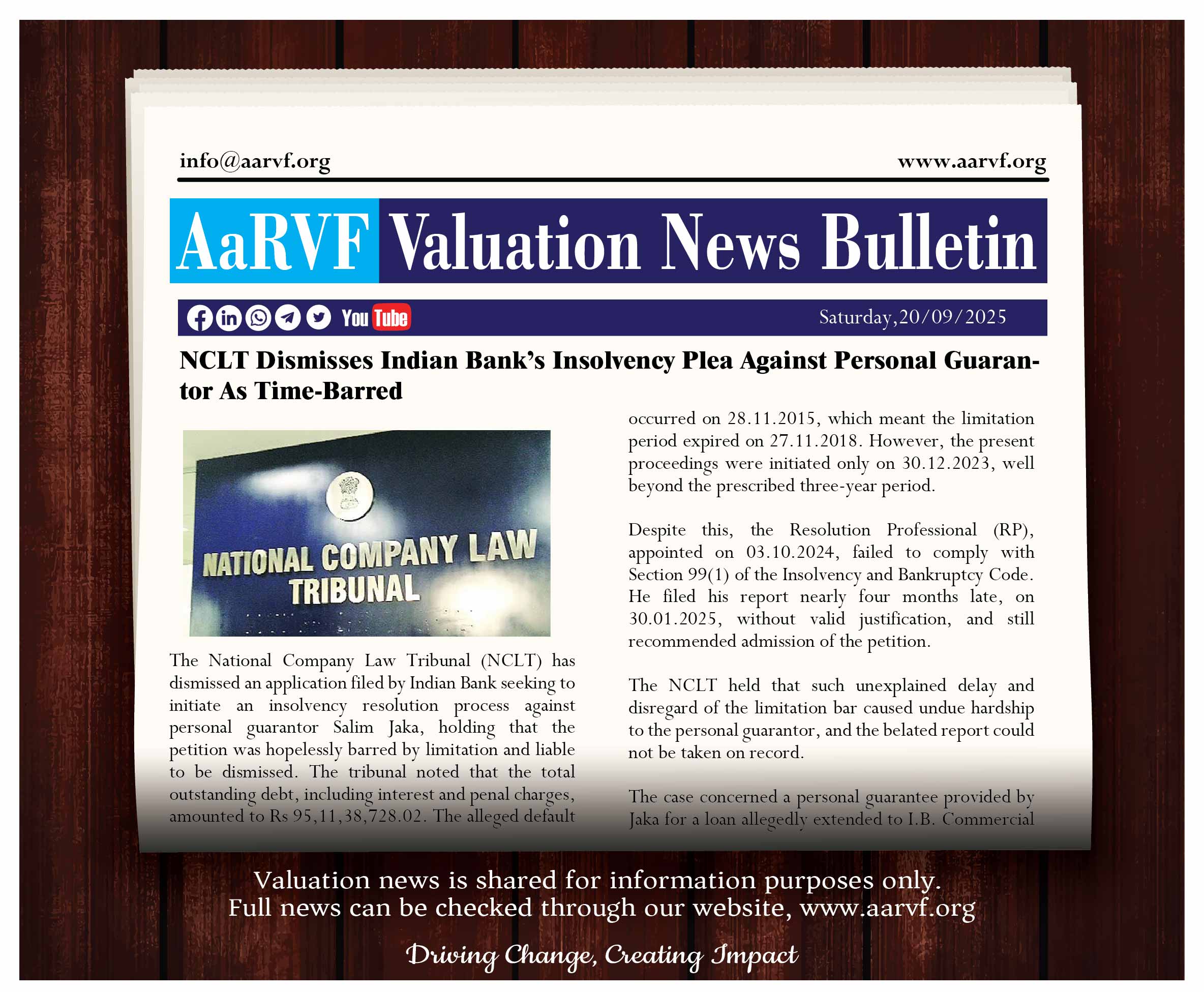 NCLT Dismisses Indian Bank’s Insolvency Plea Against Personal Guarantor As Time-Barred